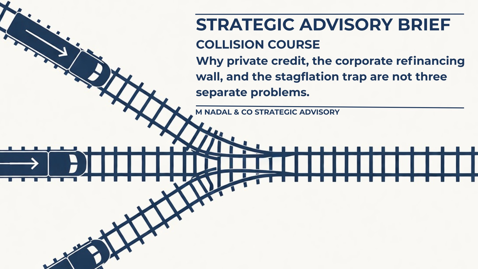COLLISION COURSE: THE SIMULTANEITY PROBLEMWhy private credit, the corporate refinancing wall, and the stagflation trap are not three separate problemsMarjorie NadalApr 07, 2026∙ Paid951ShareThree separate systems. One junction. No switching mechanism.STRATEGIC ADVISORY BRIEF M Nadal & Co Strategic Advisory | April 2026Continue reading this post for free, courtesy of Marjorie Nadal.Claim my free postOr purchase a paid subscription.PreviousNext